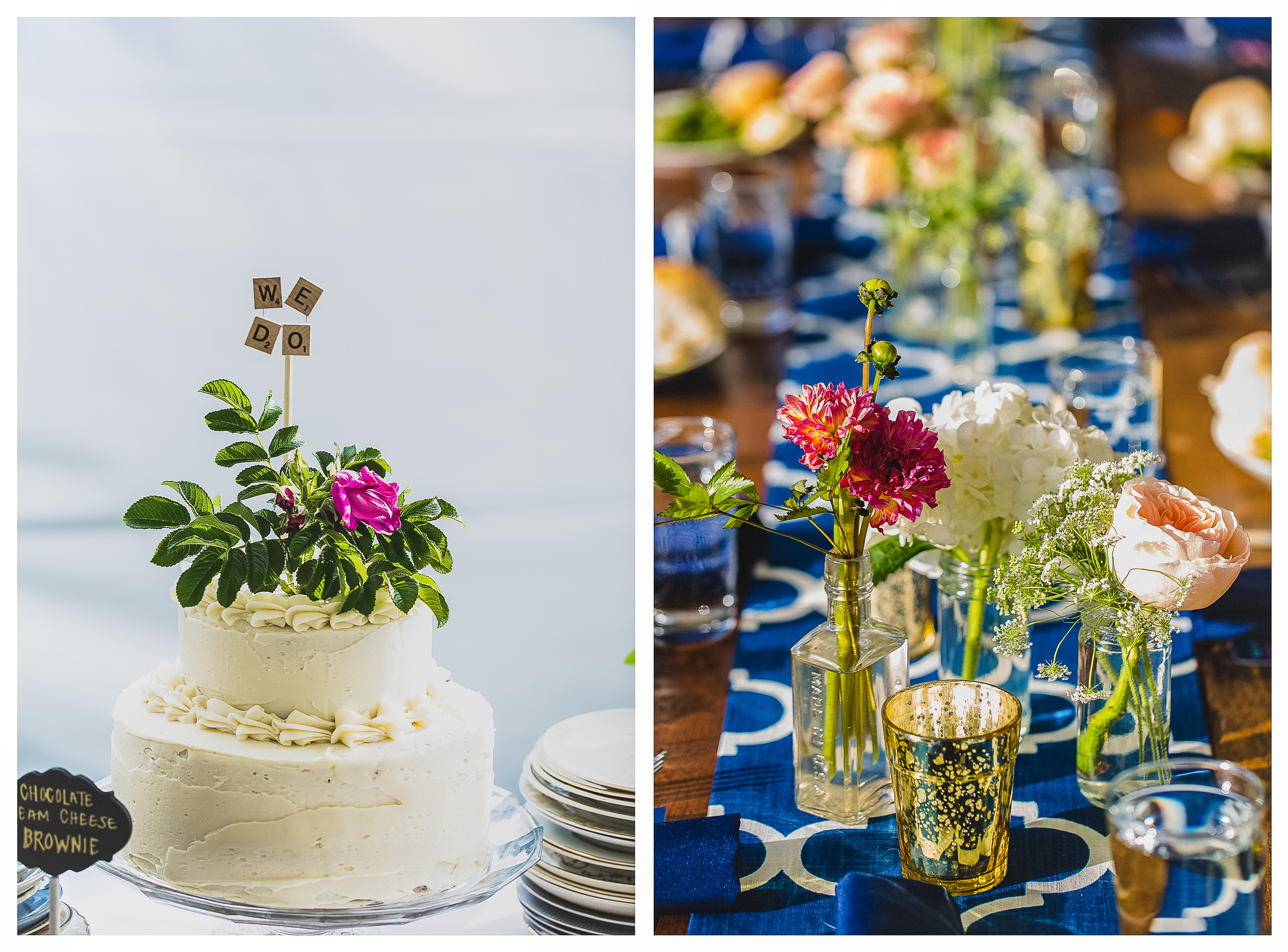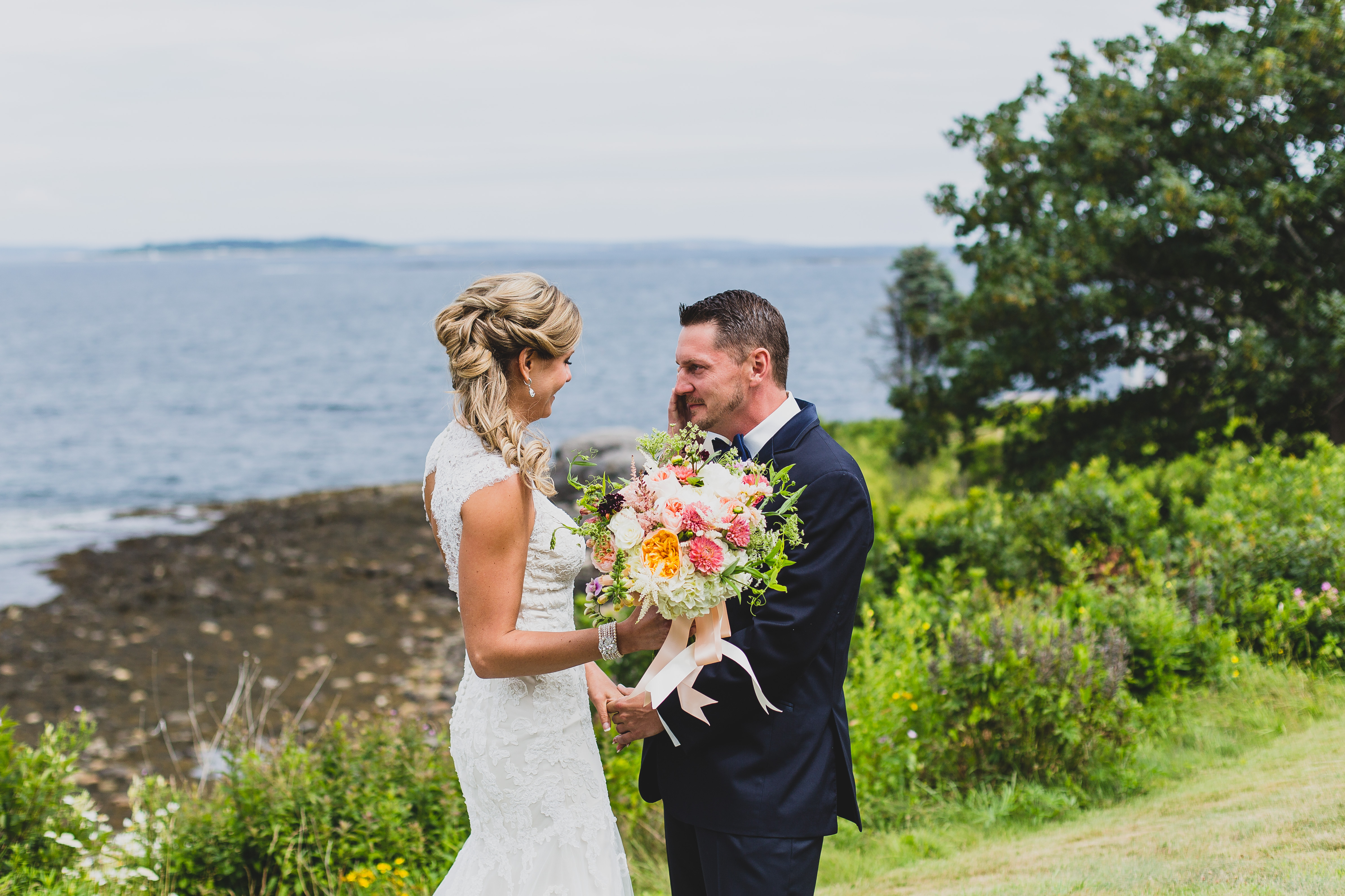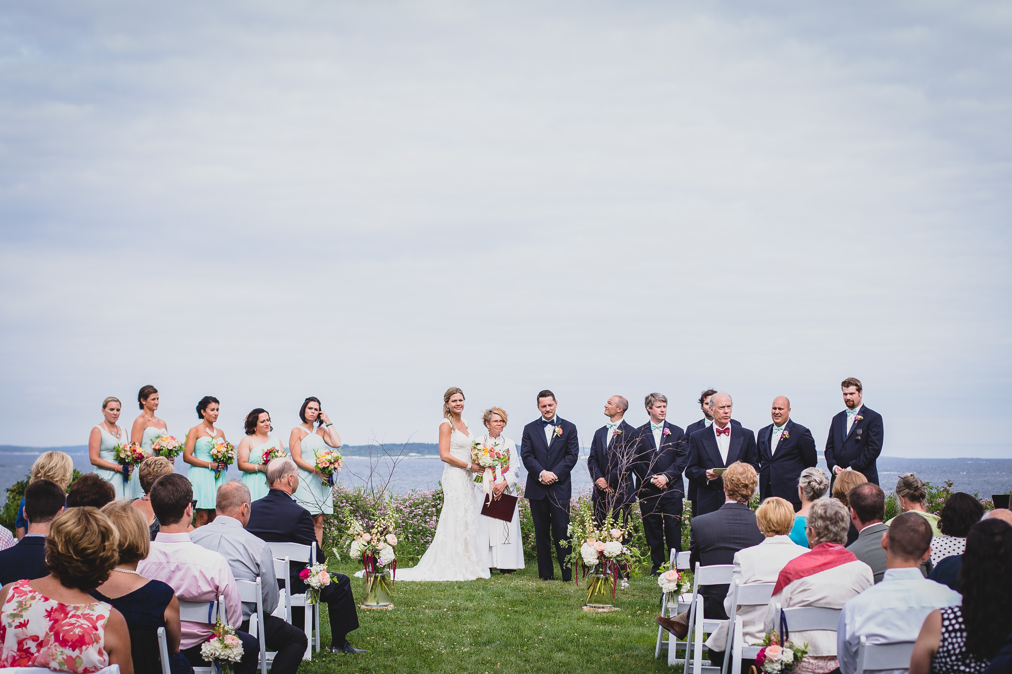 Maine doesn’t get more picturesque than the gorgeous costal setting of Bailey Island – except when you add in lush floral arrangements of dutch hydrangea, queen anne’s lace, sweet peas, peonies, mint, sage, zinnias from the florists personal gardens, a tent full of white and blue tables all uniquely decorated, a ceremony space overlooking the ocean, and the newly married Kelly and Dan. Welcome to the Wilds | William’s wedding.
