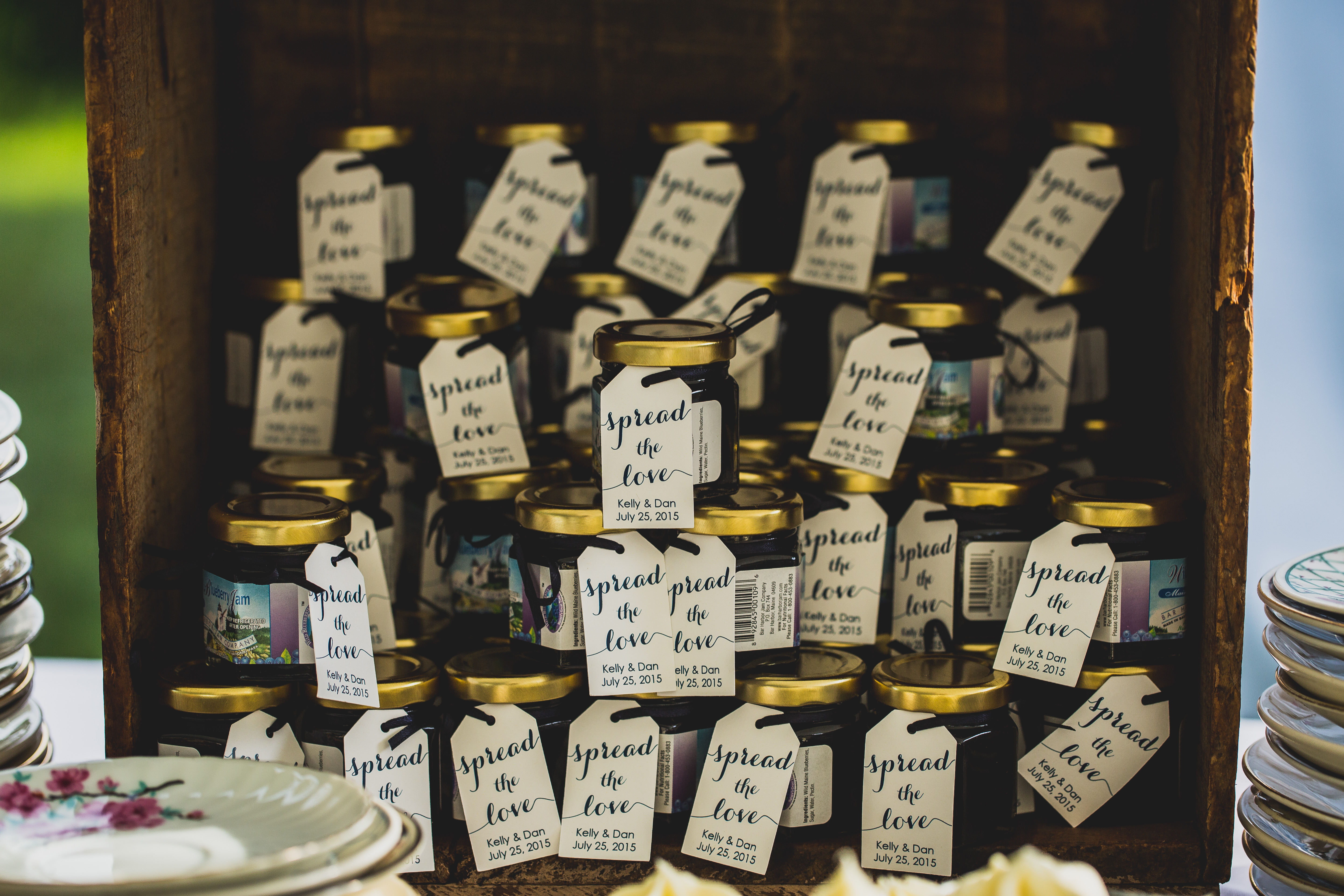 of Stars,” and took the crowd by surprise with their coordinated breakout to the upbeat chorus. Following a drool-worthy starter of pear salad, guests chose from stuffed seasonal squash, stuffed apricot chicken, or fresh cod with lobster crumble. “Love is sweet, take a treat,” directed guests to the dessert bar. Highlights included Kelly & Dan’s cake, topped with scrabble pieces spelling out “We Do,” personalized blueberry jams and lobster chocolates, and a crowd favorite – chocolate chip cookies. Brian Zutter kept the party going all night with exactly the kind of music that managed to keep everyone dancing. Shoes off, party on.